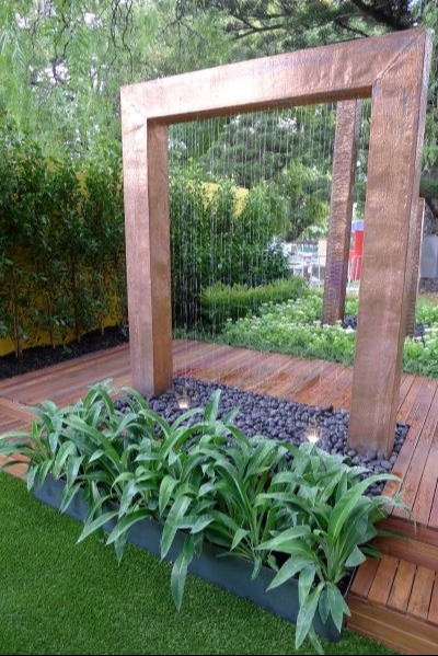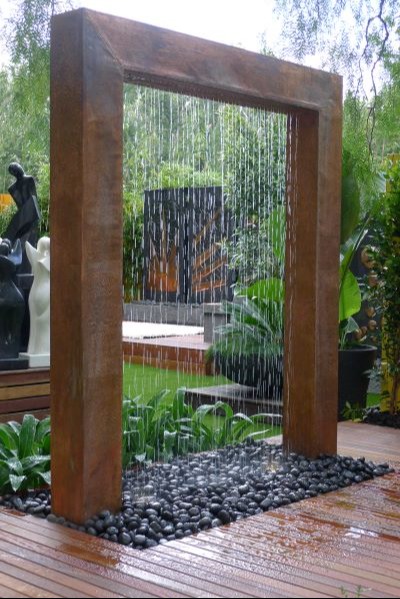 The ultimate centerpiece - this is the pinnacle of water features packages. Our Copper Rain Shower stands 2.0m tall and creates a curtain of rain between its frame. Available in Shiny or Antique copper finishes.