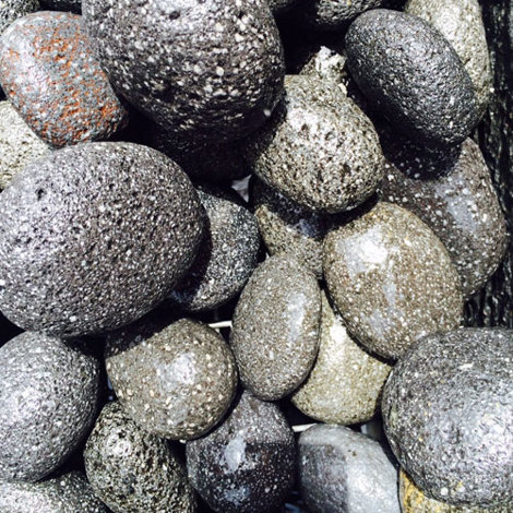 Black Pebbles 3-5 cm available in 10kg bags - these natural volcanic river stone pebbles match our stone products range.