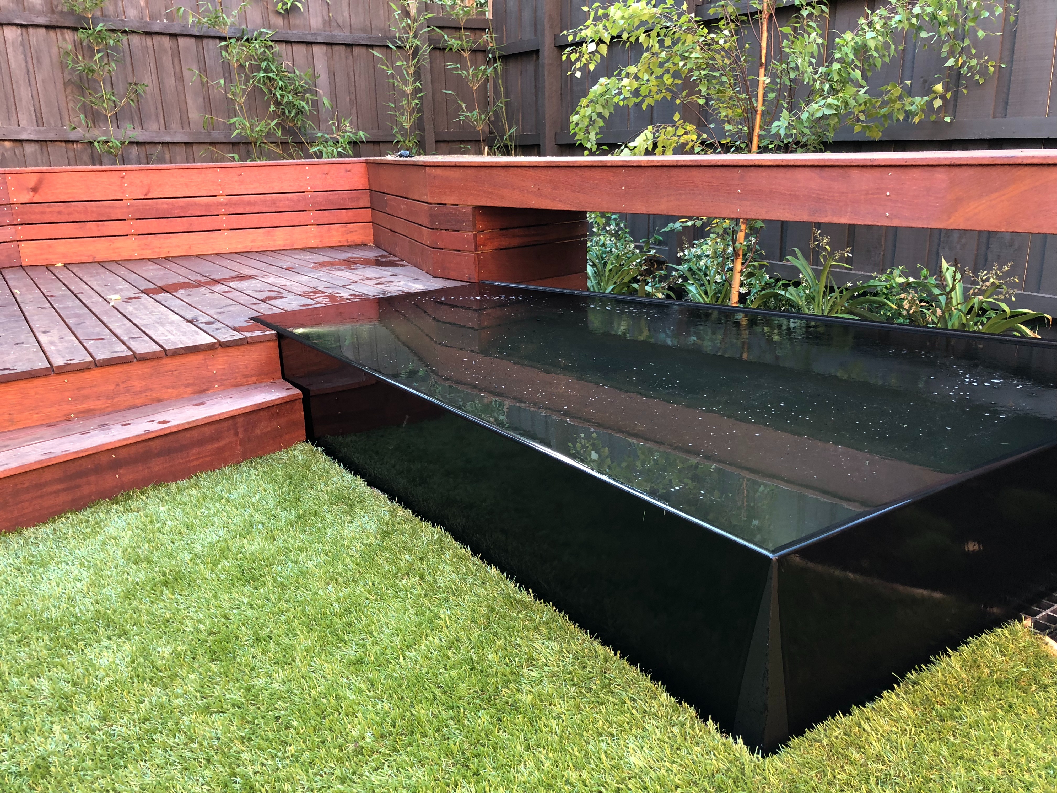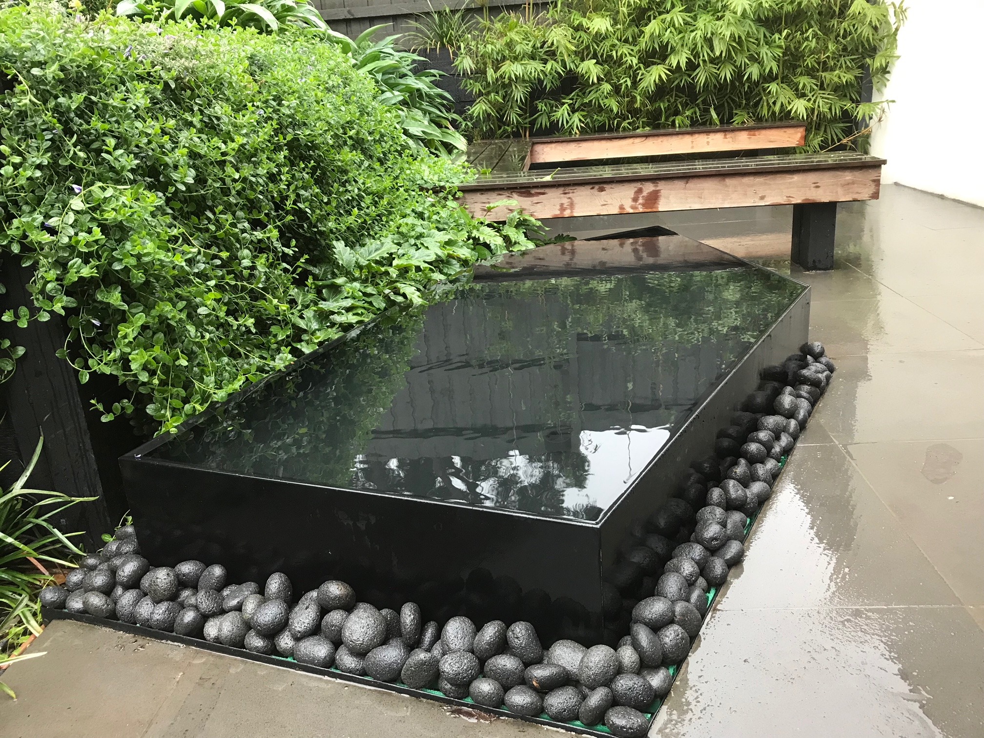 Our Custom Stainless Steel Wet Edge features (Powder Coated Black) are one of our most popular products. They are a stunning visual feature that is sure to impress. They can be custom designed for your landscape environment in a variety of shapes and sizes. Please contact us for more info and pricing.